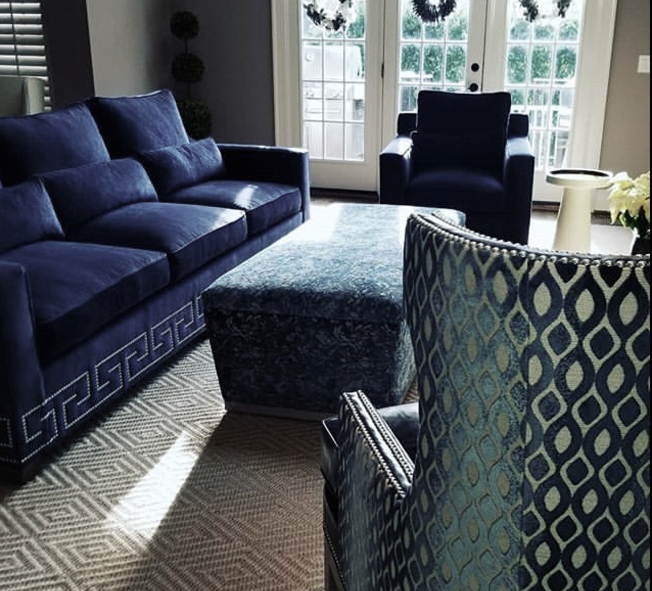 Formerly ornate and formal this living room gave no clues to the family that live there, a fashionable and active family of 4. It had become more of a large hallway than a place to linger and lounge and was holding on tightly to the late 90s.